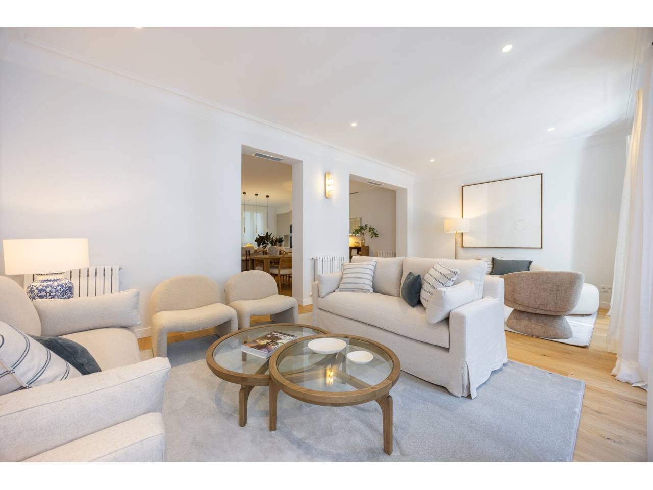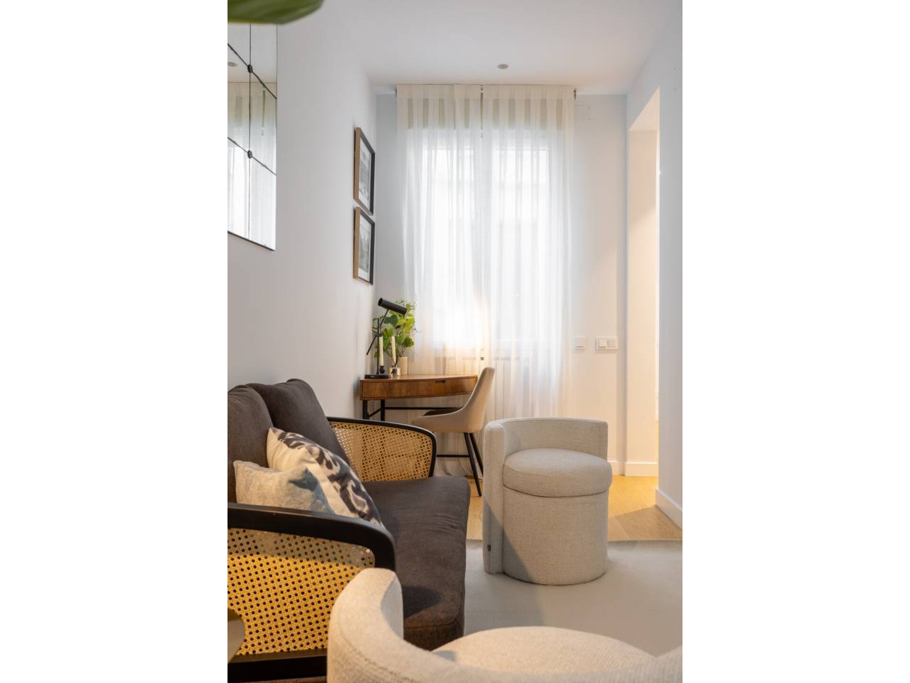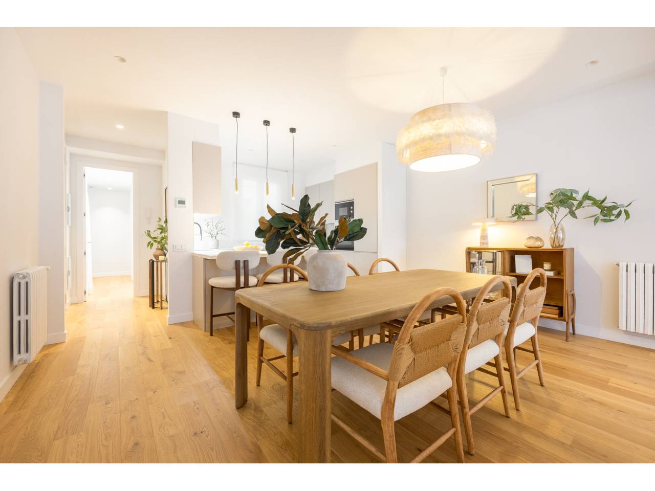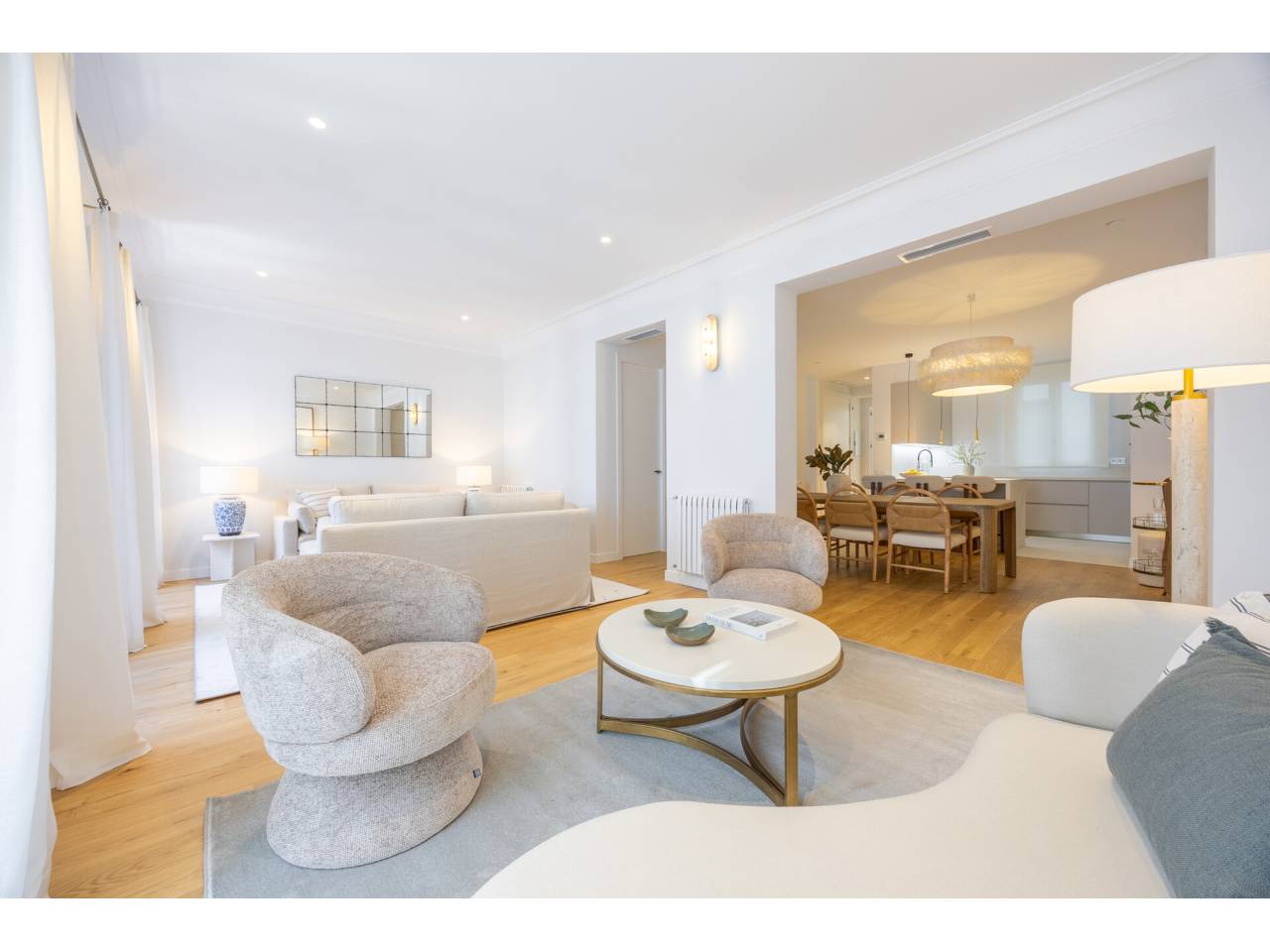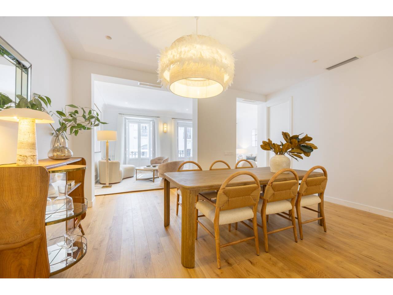 El piso, integralmente reformado de diseño, cuenta con 182 metros cuadrados muy aprovechados, distribuidos en dos zonas de salones, muy luminosas al tener dos balcones a la calle y un mirador con orientación sur, comedor, una cocina abierta, tres dormitorios en suite, family room, aseo de cortesía y zona de lavandería independiente.