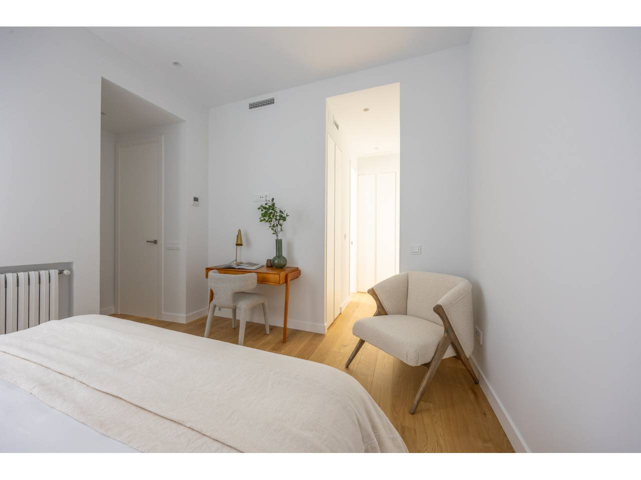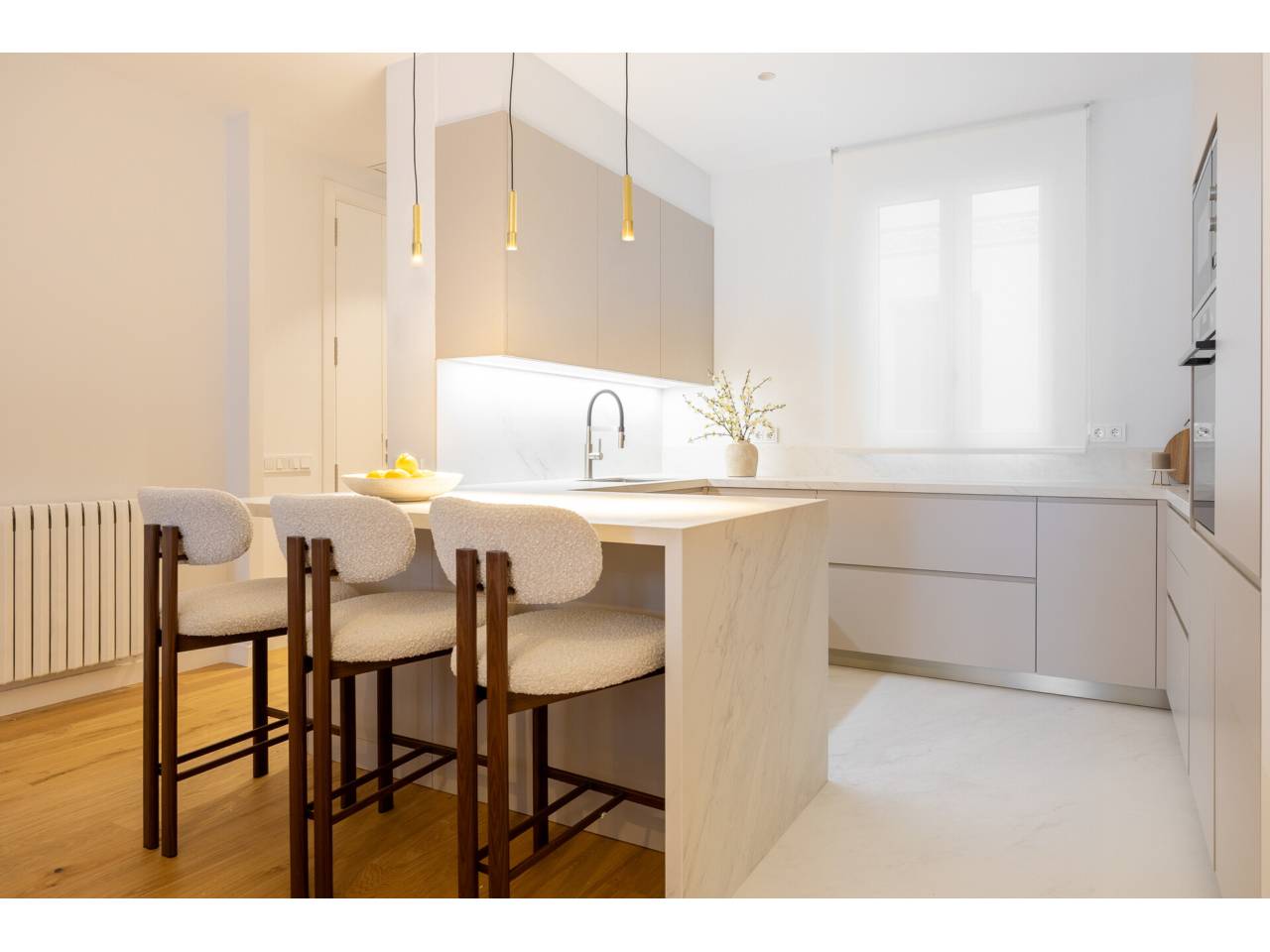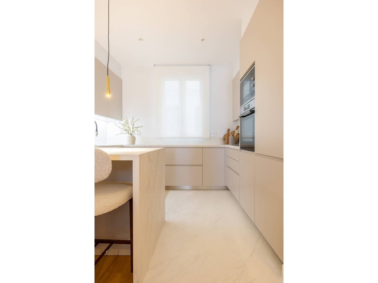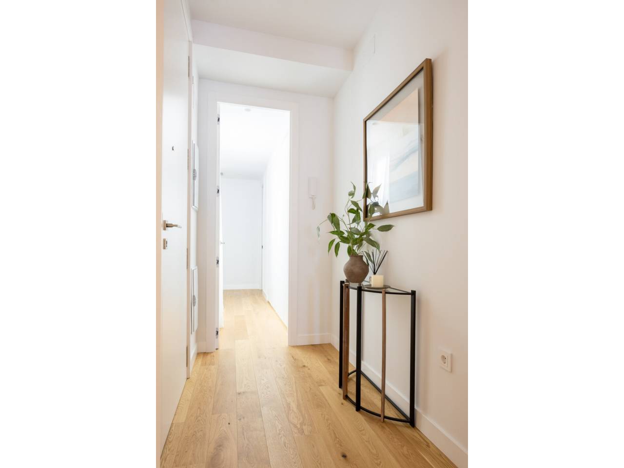 La vivienda, completamente a estrenar, se encuentra totalmente amueblada y dispone de electrodomésticos de alta gama. Los baños, la cocina y el suelo de roble natural han sido suministrados por el Grupo Porcelanosa. El piso cuenta con aire acondicionado centralizado frío y calor y calefacción individual.