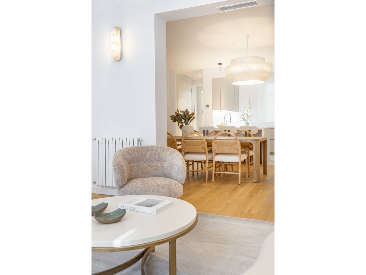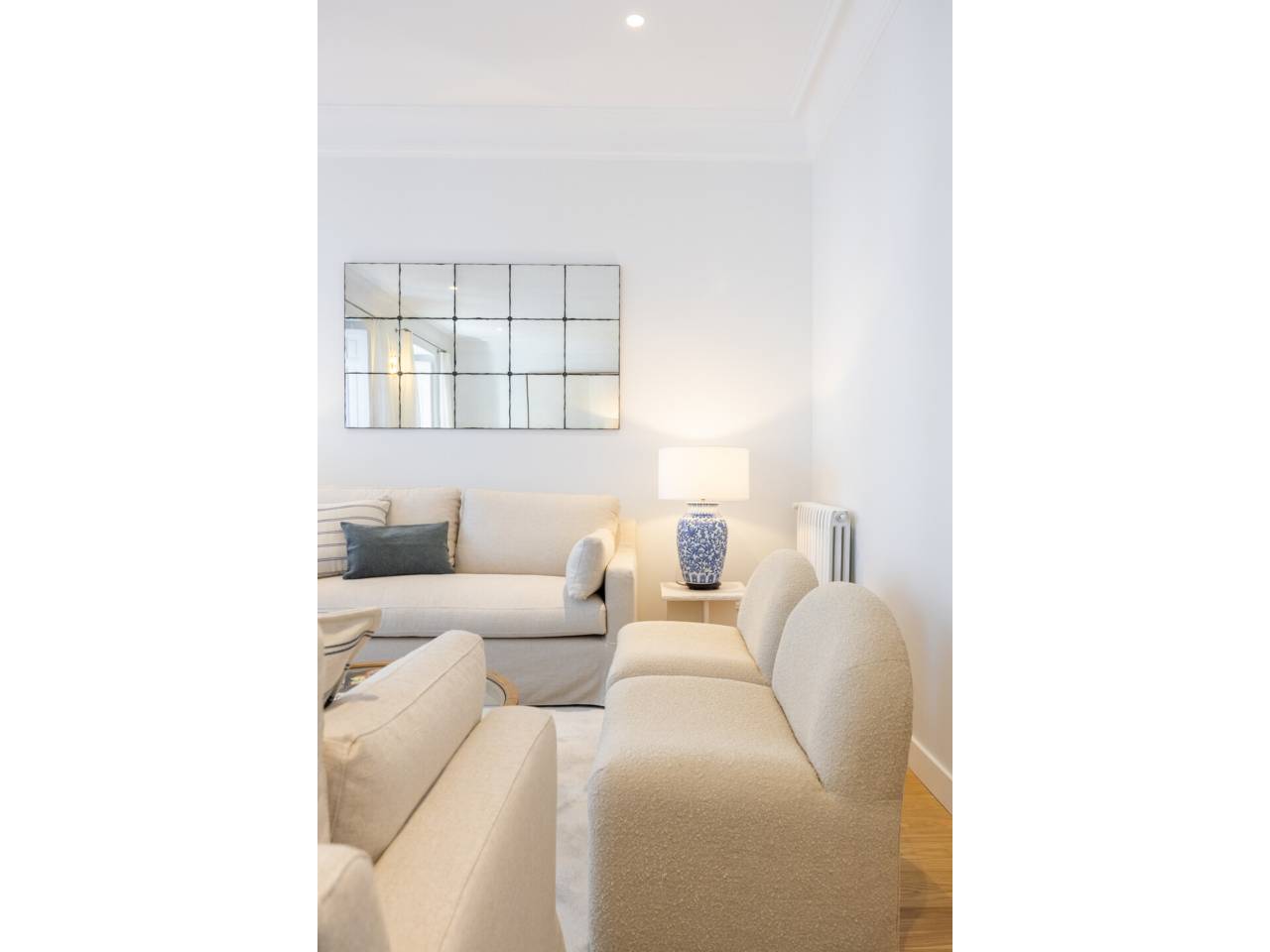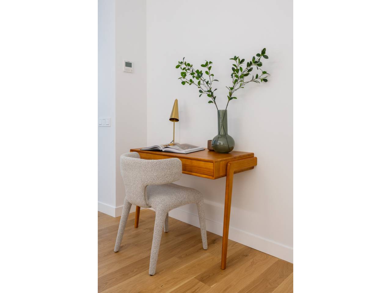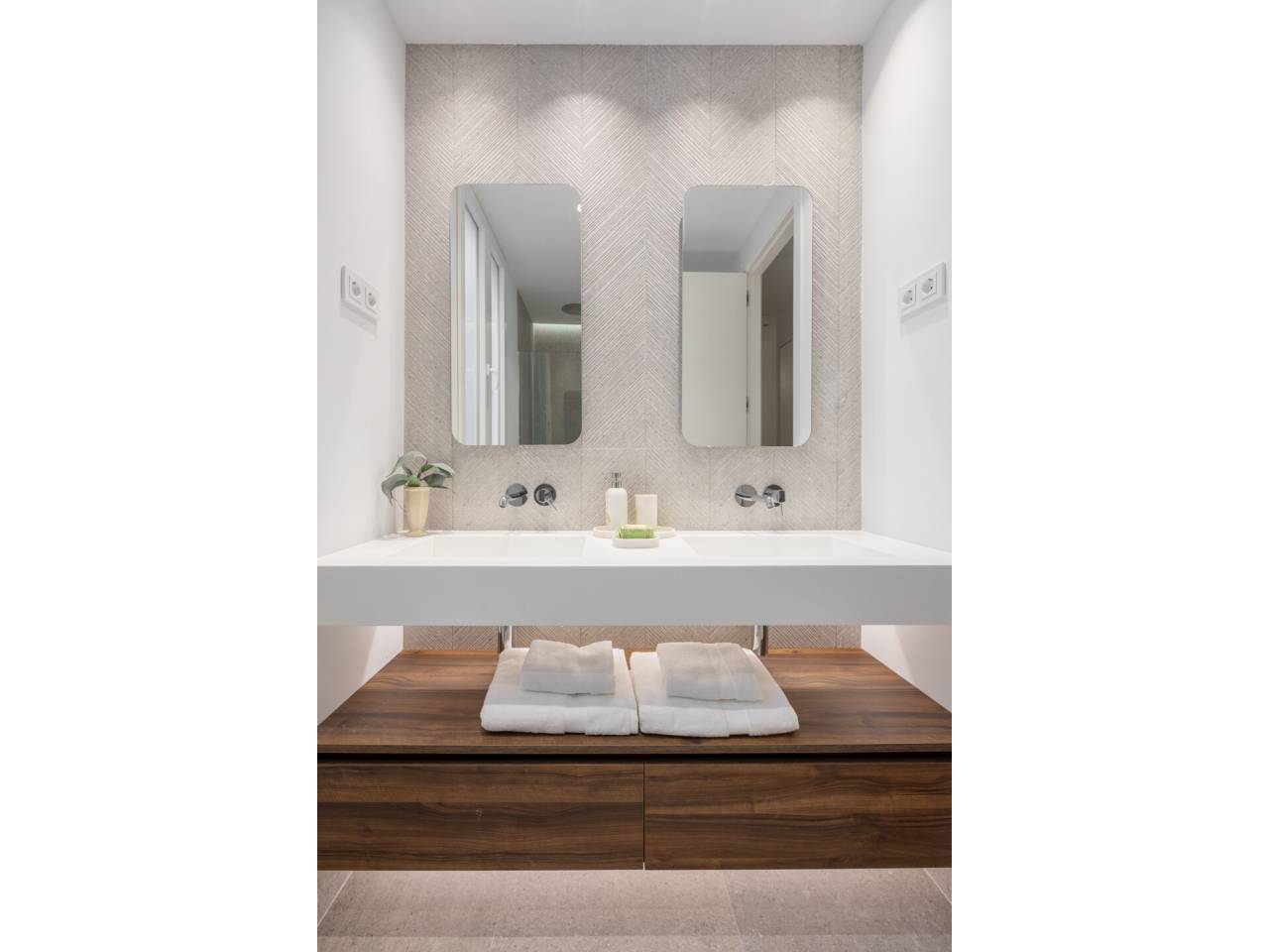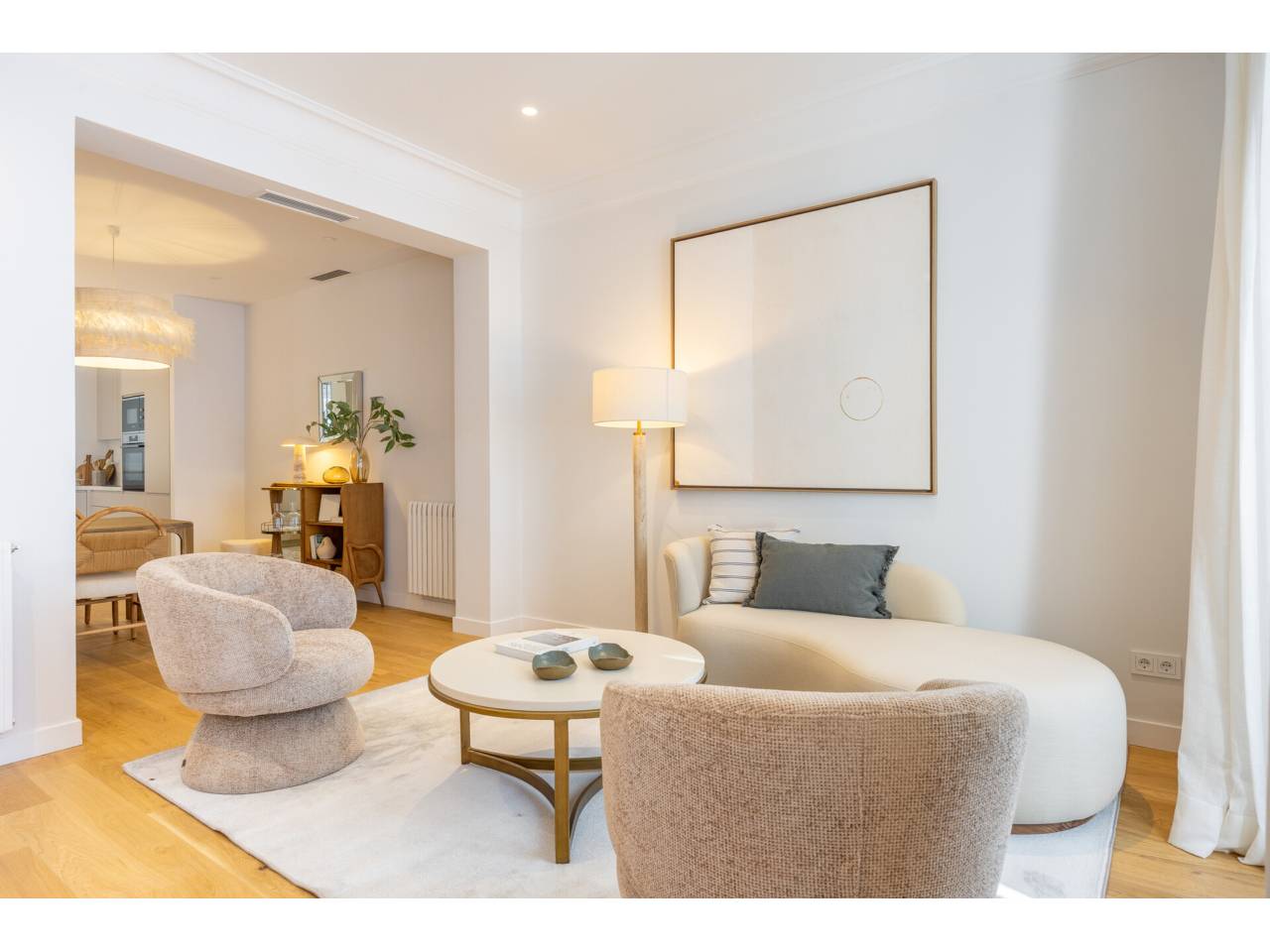 La vivienda, completamente a estrenar, se encuentra totalmente amueblada y dispone de electrodomésticos de alta gama. Los baños, la cocina y el suelo de roble natural han sido suministrados por el Grupo Porcelanosa. El piso cuenta con aire acondicionado centralizado frío y calor y calefacción individual.
