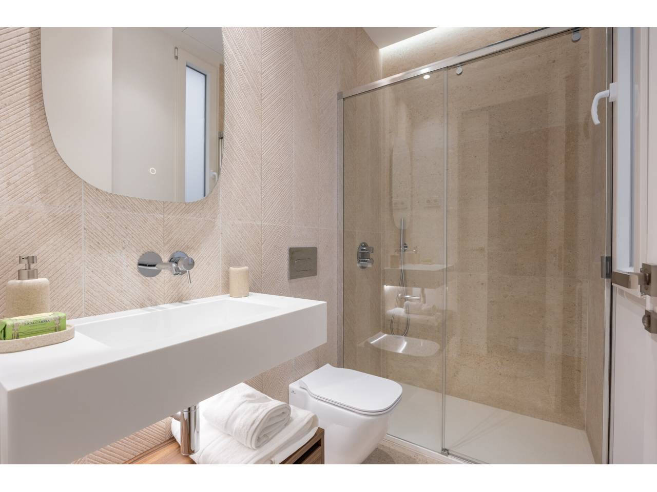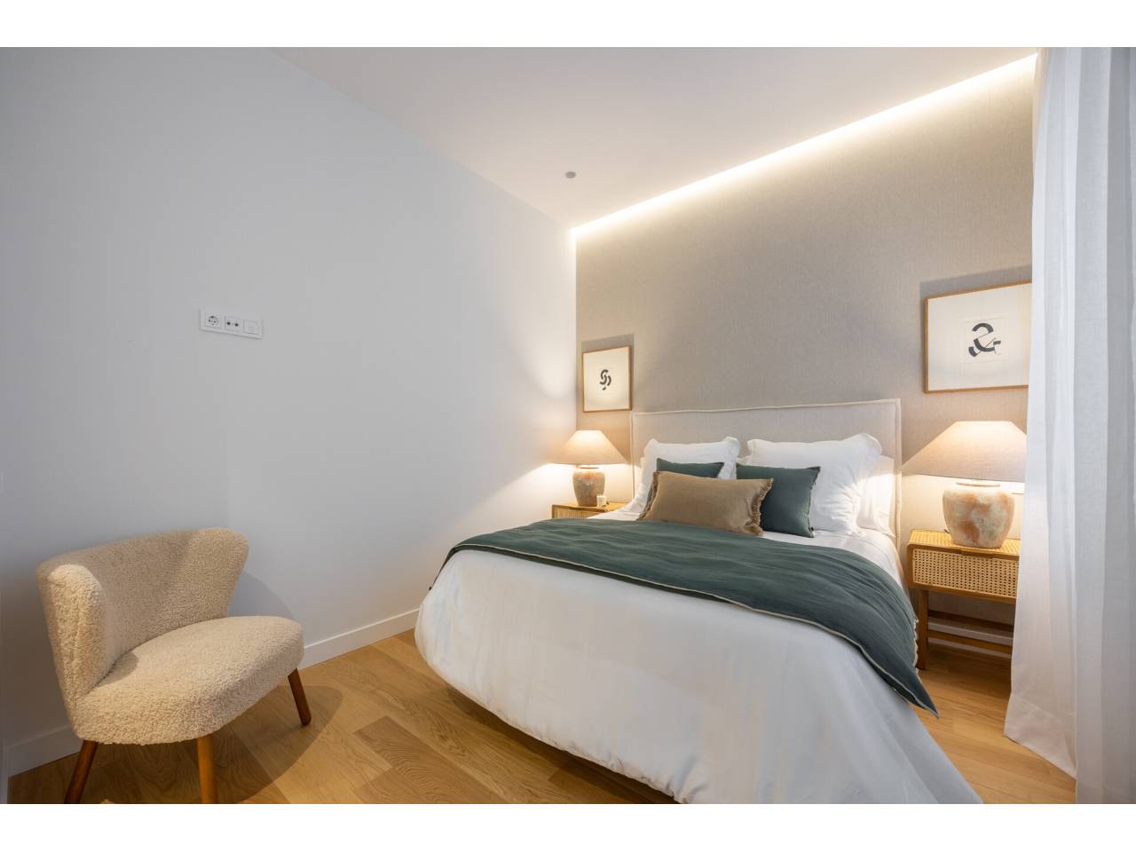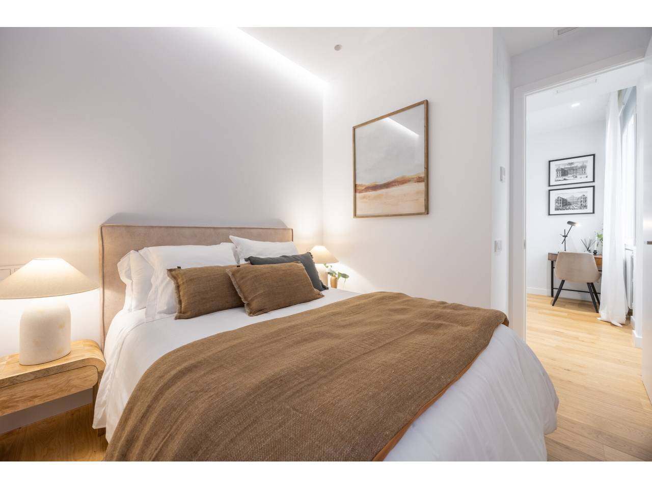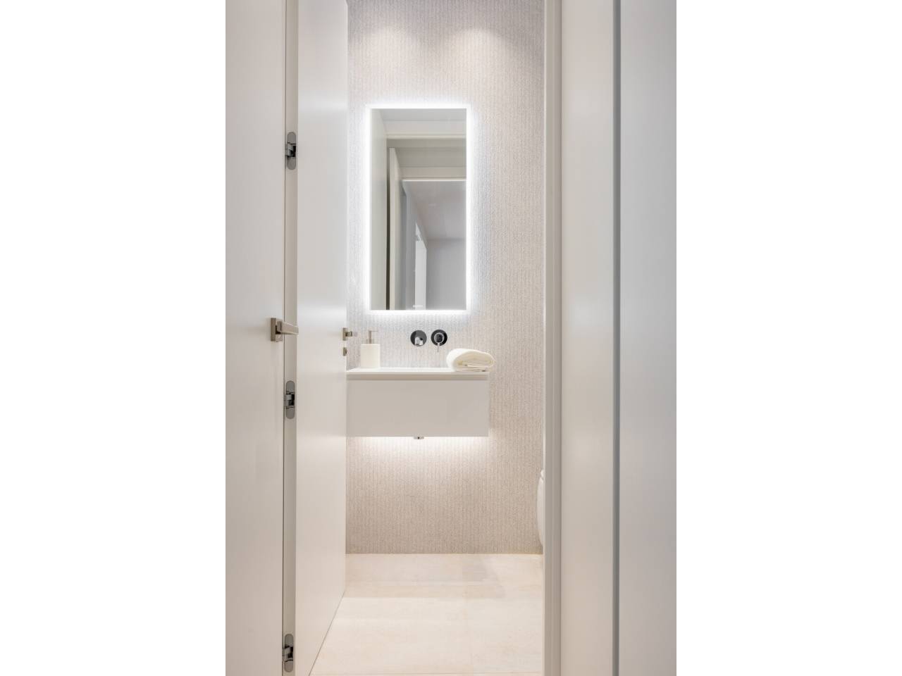 La vivienda, completamente a estrenar, se encuentra totalmente amueblada y dispone de electrodomésticos de alta gama. Los baños, la cocina y el suelo de roble natural han sido suministrados por el Grupo Porcelanosa. El piso cuenta con aire acondicionado centralizado frío y calor y calefacción individual.